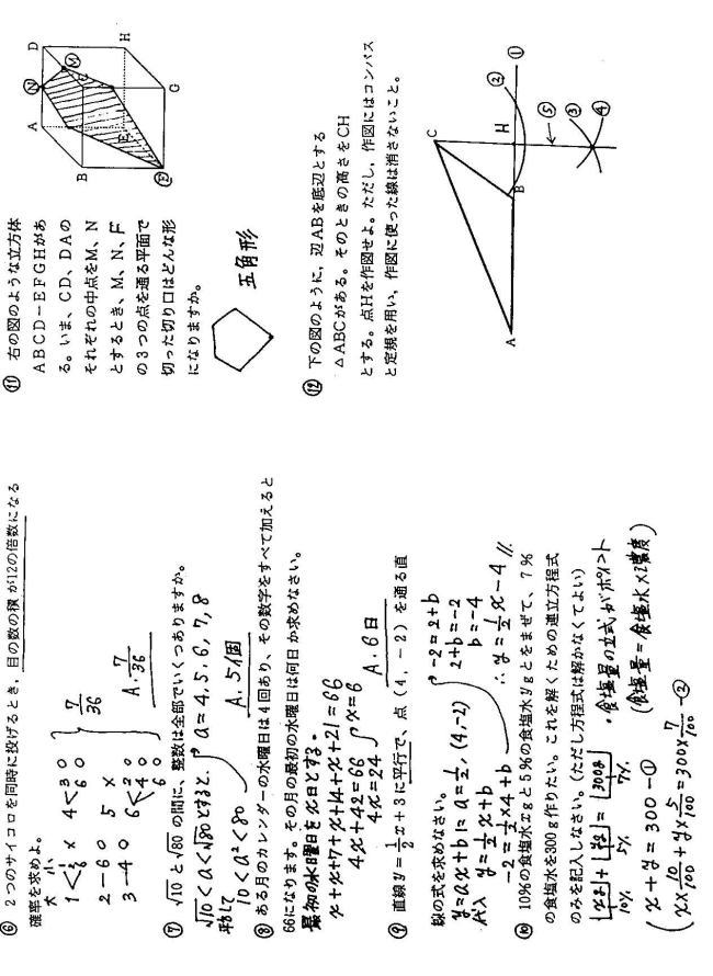 ■中3数学実力テスト対策(夏休み明け用ー2回)解答2