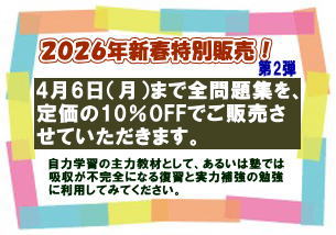 【中2生対象】―「中2数学の実力をつける問題集」48枚の使い方・アドバイス この中2数学の実力をつける問題集は、トッポ先生24年の塾指導の経験と実績から生み出したもので、今の自分の数学の力を知ることがまず第一、そしてそこから何が足りないのか、大事な基本のどこをを忘れているのか、また応用はどこまでができないと高校入試には通じないのか等、そういったすべての状況を知悉した上で、現実に即して1枚1枚、問題1つ1つこころを込めて作り上げた実力養成問題集です。きっちりやれば、かなりの学力向上が期待できると思います。 基本構成は、1回分12枚、A、Bの2回、テスト形式を取りいれ、Aは「実力チェックテスト」(2枚)、Bは「実力アップ確認テスト」(2枚)、その対策、復習演習が8枚、で構成しています。 まず、今の自分の力を、Aの「実力チェックテスト」をして知ること。これがとても大事ですね。基本問題から構成されているとはいえ、なかなか点が取れないのではないでしょうか?! 平均点はアバウト50点と考えて下さい。 自分にとってわからないところ、ミスした箇所を徹底して直していくことです。解答を参照して、よく考え、覚え、反省し、ノートに問題を写し、やり直すこと。必ず、これをすること。 それができた後、次に、「傾向と対策」プリントが8枚ありますから、そこで演習して基本の力を養ってください。当然できない問題、わからない問題、またケアレスミスをした問題があるはずで、それをノートにやり直し、できる限り吸収することが大切です。そのあと、Bの「実力アップ確認テスト」をして、どれだけ実力がついたか、点数が上がったか、を知ってください。問題内容・レベルはあまりAと違いませんから、自己確認できるはずです。そこでの直しをすることは当然です。 出題範囲は、上記で書いていますように、1回目が中1の全範囲、2回目は中2の1学期学習の「式の計算」「連立方程式」までとし、3回目は「1次関数」「平行と合同」(直角3角形までとする)までを範囲としています。最終の4回目は、「3角形と4角形」「確率」までの中2の全範囲、もちろん中1の範囲も含めたものとします。 2年の、その時期時期、タイミングにあわせ、学習しなければならないこと、押さえておかねばならない事項、またよく忘れてしまう箇所、理解が不十分な問題(例えば1次関数)などを、集中して演習出来るように構成、配分してありますので、この問題集を利用して1回目からじっくり行なえば、実力テスト対策ばかりでなく、数学に関する限り入試勉強のこれまでの学習範囲は、必要十分に押さえたことになります。 ここで蓄えた力、この問題集で培った実力を持って、中3に備えましょう。おそらくその力は、クラスのほかの誰にも負けないものになっているはずです。 まあけっこうな分量と、それ以上に手ごたえある深い内容を含んでいますから、しっかりした意志と継続をもって取り組んでください。この問題集を活用して、たしかな実力形成と的を得た学習をされることを、こころより祈念いたしております。 |